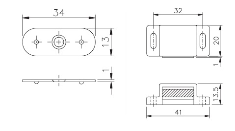 Magnetic Catch, 4 KG, Black, cc 32mm, With Striking Plate