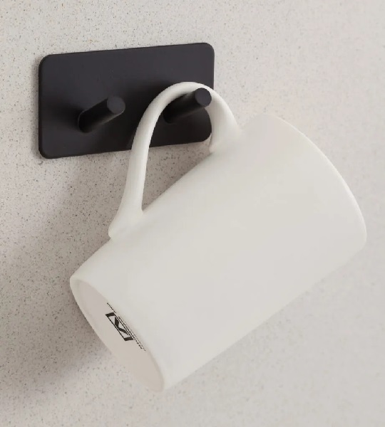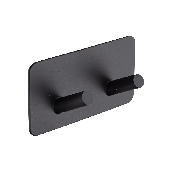 Wardrobe Hook "Pisa", Adhesive, SS304, Matt Black, 2 Hooks, 47x92x2mm