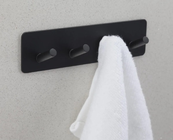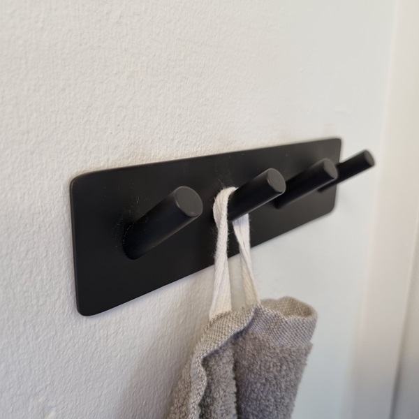 Wardrobe Hook "Pisa", Adhesive, SS304, Matt Black, 4 Hooks, 47x182x2mm