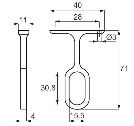 Centre Wardrobe Rail Support, D14, CPL, F/Oval Tube, H 71mm