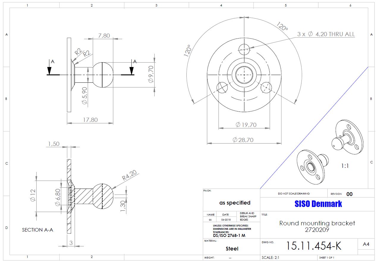 Round Mounting Bracket, Steel, NPL, F/15.11.439/440/441/442 Incl. 3 Wood Screws