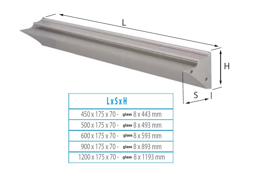 ALU. Profile 500mm, Anodized, For 8 x 493mm Glass Shelf, No Glass, LED or Cables