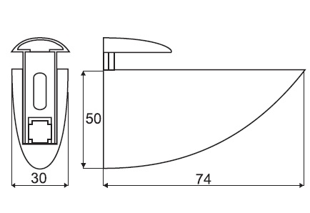 Shelf Bracket #52, F/Glass & Wood, 4-19mm, Matt Nickel Pl, Height:55mm, Lenght:74mm, Width: 30mm