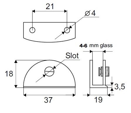 Shelf Support "Dome" Small, 37x19x18mm, CPL, ø4mm Screw Holes, F/Glass Thickness 4-7mm