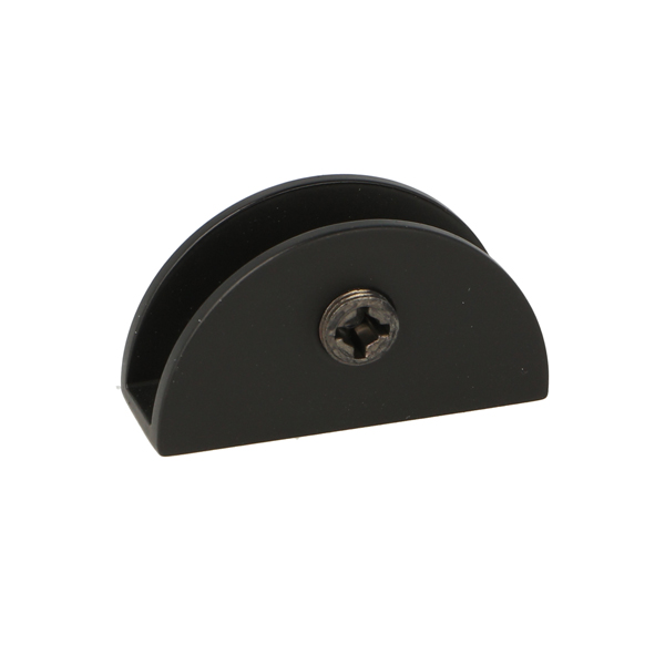 Shelf Support "Half-Moon", Black Finish, 50x27x16mm, 4-8mm Glass, W/2 Mounting Holes ø4mm, Tightning Screw W/Hex Hole 4mm