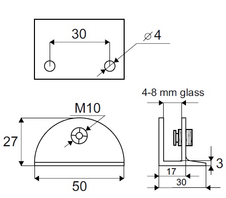 Shelf Support "Half-Moon X-Strong", Alu Look, 50x30x27mm,4-8 mm Glass Thickness