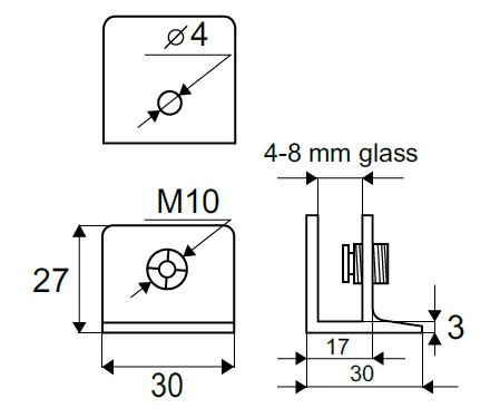 Shelf Support "Square X-Strong", Alu Look, 30x30x27mm, 4-8 mm Glass Thickness