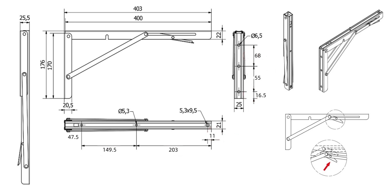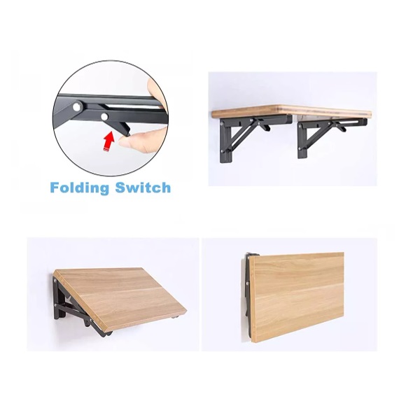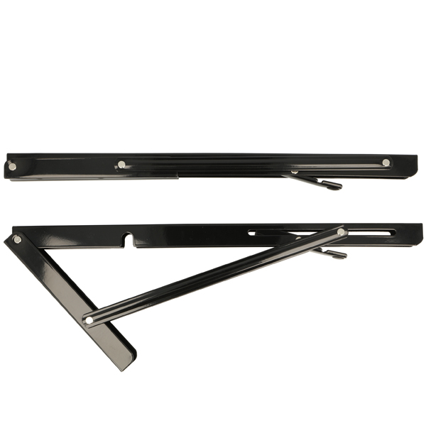 Folding Bracket, Steel, Black, 400mm, Self Locking,Max Load: 60 KG pr. Pair, RAL 9005