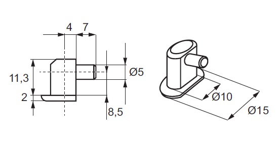Lay-In Shelf Support F/16mm Panel, ø5mm Plast Pin, Brown