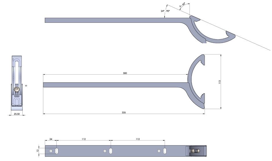 Shelf Bracket "Slope", SS-304 Brushed, For Sloping Walls from 0-66 Degree, F/Glass & Wood Shelves, Incl.: 2 Socket Screws M6x8mm DIN 7984, 2 x CSK Chipboard Screws 5x50mm, 2 Plastic Wall Plugs ø8x50mm, 1 x 4mm L-shaped Hex Key, 2 Flat Washers, 3 x Suction Pads F/Glass Shelves