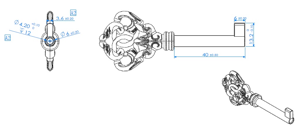 Antique Key "Rococo", NPL, Shaft 40mm, W/Euro Bit