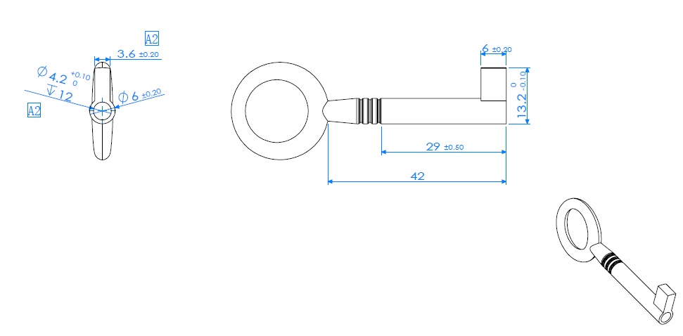Traditional Key # 0007, Nickel Plated, Eurobit, Shaft 30mm