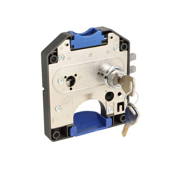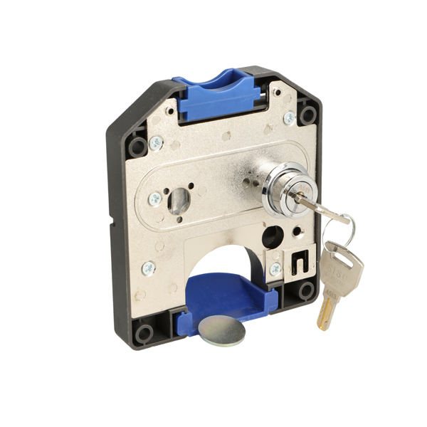 Coin Lock F/1 CHF,W/MIC System #01,CPL,LH, Snake SISO Metal Keys, Black Plastic Body, Coin Entrance & Exit All Blue Plastic, W/SISO Logo on Lock Body, w/Chrome Plated Rosette, Included 1 Master Key + MIC Key Pr. Inner Box