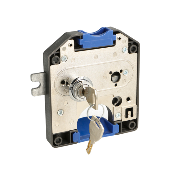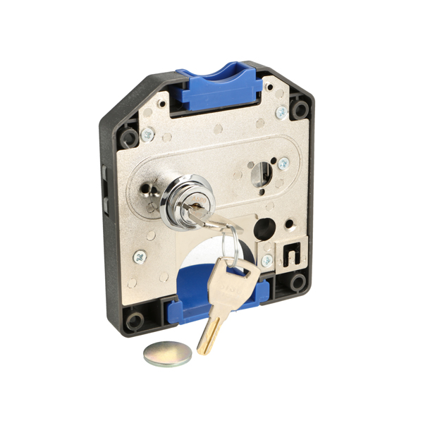 Coin Lock F/1 CHF,W/MIC System #01,CPL,RH, Snake SISO Metal Keys, Black Plastic Body, Coin Entrance & Exit All Blue Plastic, W/SISO Logo on Lock Body, w/Chrome Plated Rosette, Included 1 Master Key + MIC Key Pr. Inner Box