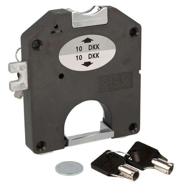 Coin Lock F/10 DKK, W/IC, CPL, LH, Tubular CK SISO, Black Plastic Body, Coin Entrance & Exit Chrome Pl. Plastic w/SISO Logo, w/Rosette, w/Interchangeable System ONLY