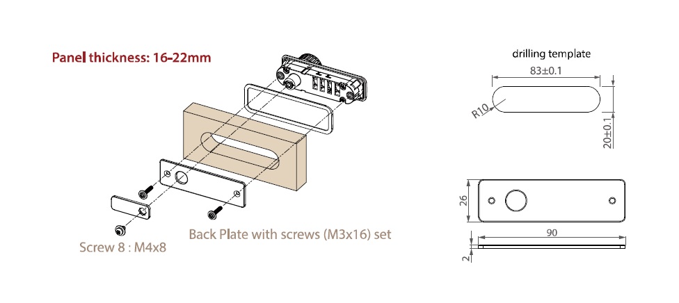 Back Plate, Black Plastic, F/Lock M3001/M3002, F/16-22mm Pa- nels, 2 Screws, Size:90x26x2mm, ABS Material, Cutting Hole: 83 x 20mm
