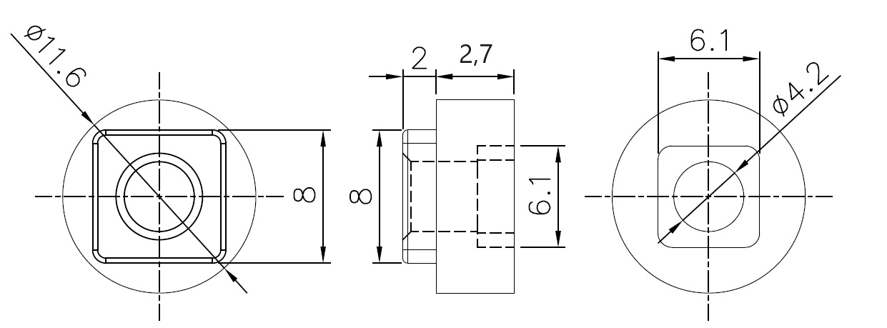 Cam Pl. Converter F/Locks M237/238/266/268/300/316/3001&3002 NPL, 2,7mm Height, Changes Cam Plate Hole from 6 x 6 mm to 8 x 8 mm