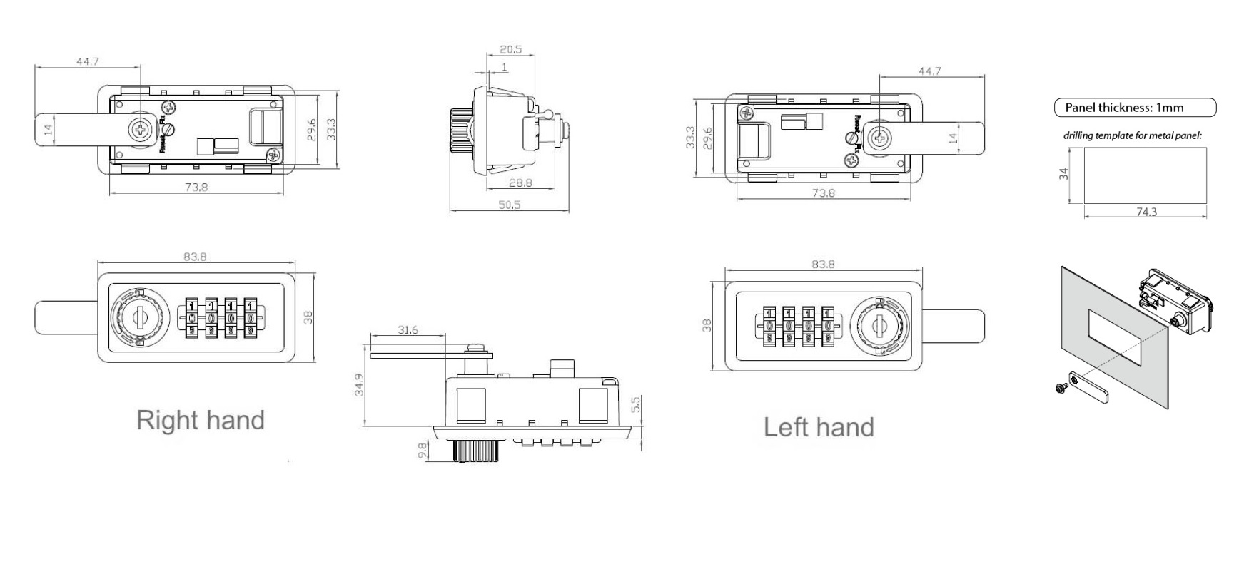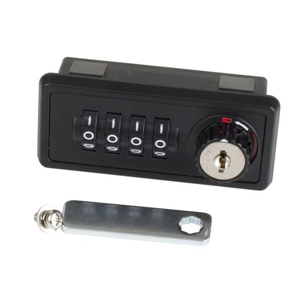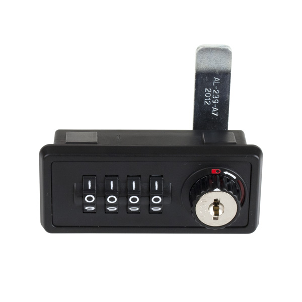 Combi. Cam Lock M237,4-Digit,LH,180DG,Ext.Cam Pin,"Public or Privat", Setting By Switch Button, w/Master Key & Decoding Function, Black ABS Housing, Zamak Cylinder, Straight Cam No. 7, CE:45mm, Master Key Code D001