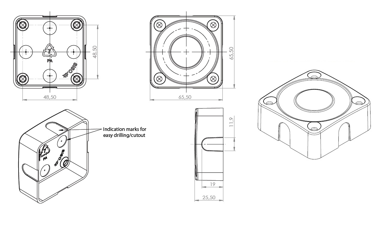 Cover F/Mifare1 Lock "Mini" 14.60.275, Black PA, 65,5x65,5x 25,5mm