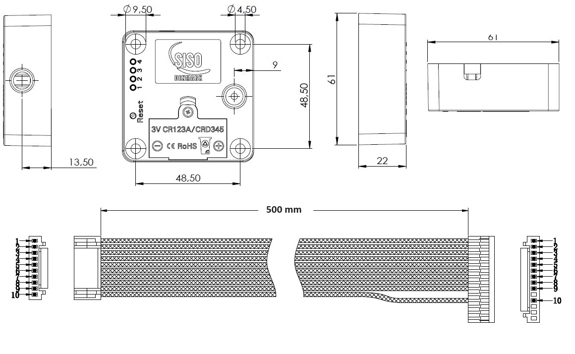 Invis. Mifare1 Lock "Mini" W/500mm Antenna, 61x61x22mm, Black ABS Body, W/Light Grey Card Reader Knob W/Logo, 1xCR123A Batt. Lithium To Be Bought Separately, Can be Programed to Public, Private or Office Mode W/Non Locking & Low Battery Alarm, Striker & Protection Cover to be Bought Separately