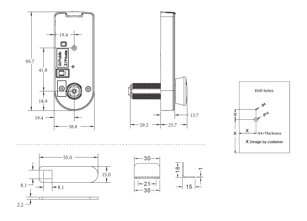 Elec. Combi. Cam Lock, "Marc II M1", Public/Private, Black Body, Incl. Striking Plate & Straight Cam Pl, CE: 47mm (Battery CR2032 Not Included) - Download User Guide From www.siso.dk - Master Code can ONLY be changed in LOCKED Position, Type Default Master Code: 11223344 +OK (Long Press until Light on)+New Master Code x x x x x x x x (8 digits)+ OK+New Master Code x x x x x x x x (8 digits)+ OK, Preset In Public Mode