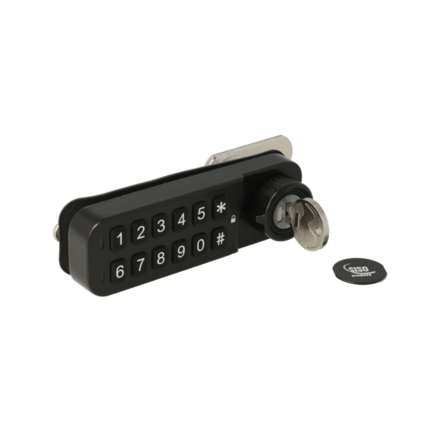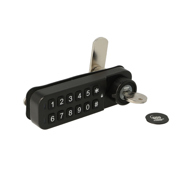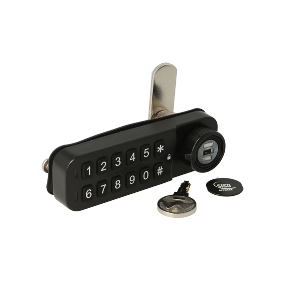 Elec. Combi. Cam Lock, "VIC", ø19x20mm,Horizontal, LH, Black All Zamak, Public/Private, W/Master Key System #07, 3 Level Management, W/Auto-timer Function, IP65 Rating, Powered by CR2450 Button Battery, 30.000 Cycles, CE, REACH and Rohs Certified