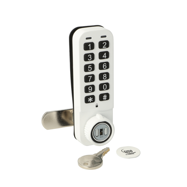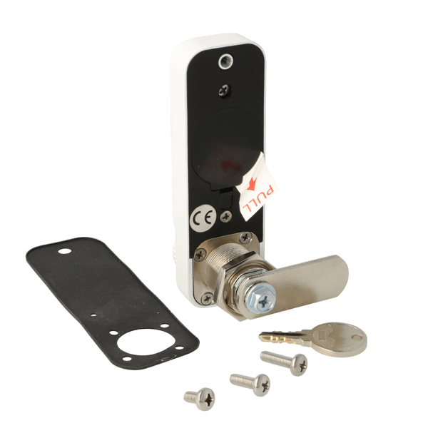 Elec. Combi. Cam Lock, "VIC", ø19x20mm, Vertical, Uni, White All Zamak, Public/Private, W/Master Key System #07, 3 Level Management, W/Auto-timer Function, IP65 Rating, Powered by CR2450 Button Battery, 30.000 Cycles, CE, REACH and Rohs Certified Universal - No right hand or left hand