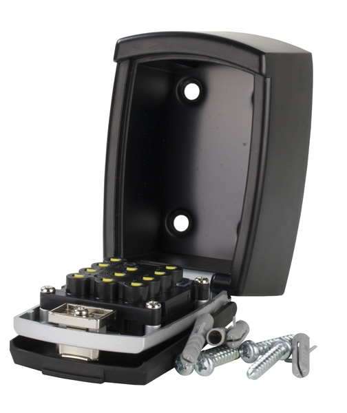 Key Storage Box, 9 Push Buttons, Black, W88 x D56 x H126mm , Inner Size: W62 x D26,5 x H100mm, Including 4 x Screws & 4 x Plugs