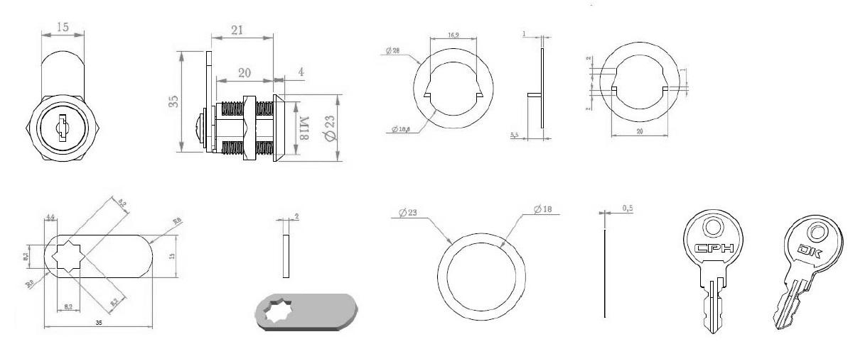 # Cam Lock 1820, 90DG, Cam No. 9, CPL, MK CPH,80 KD,W/2 Tran parent Washers, W/Steel Spike Washer