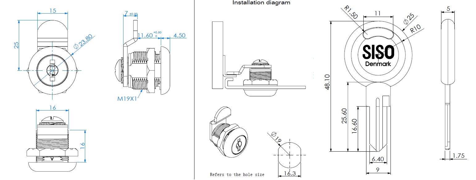 Cam Lock 1916, 90DG, SS Cap+Core, Cam A51, Box Packing, CK SISO, Cranked 5mm, W/2 Transparent PVC Washers, 480 Small Boxes Pr. Export Carton, 480 Different Key Codes pr. Carton