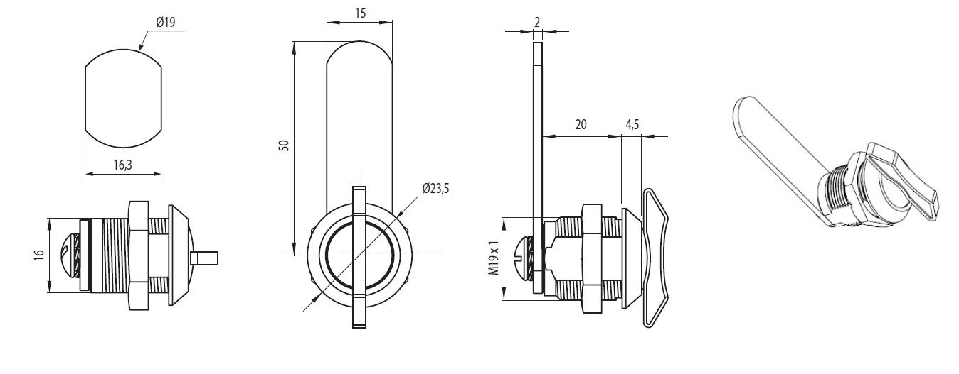Cam Lock 1920, 90 DG, CPL, Turn Knob, Straight Cam A06