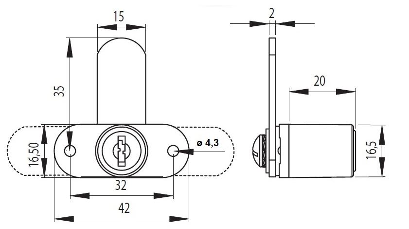 Cam Lock 5250, ø16,5x20mm, 180DG, NPL,CK SISO,Cam A03,KA E30
