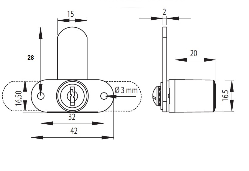Cam Lock 5250, ø16,5x20mm, Alu, 180DG, Cam 155, MK No Logo Cam C/E: 28mm Premounted 12 O´clock, W/1 S-shaped & 1 L- Shaped Striker, Key & Striker In Polybag Inside Polybag. Marked:019040903