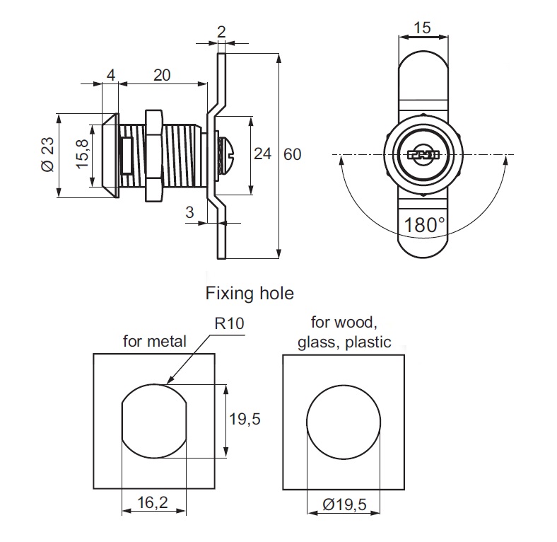 Cam Lock M1920, 180DG, Cam 138, "Cashier Desk", CPL, CK SISO Key Pull Out at 3 Positions. 6,9 & 12 O´Clock, Master Key System J#11
