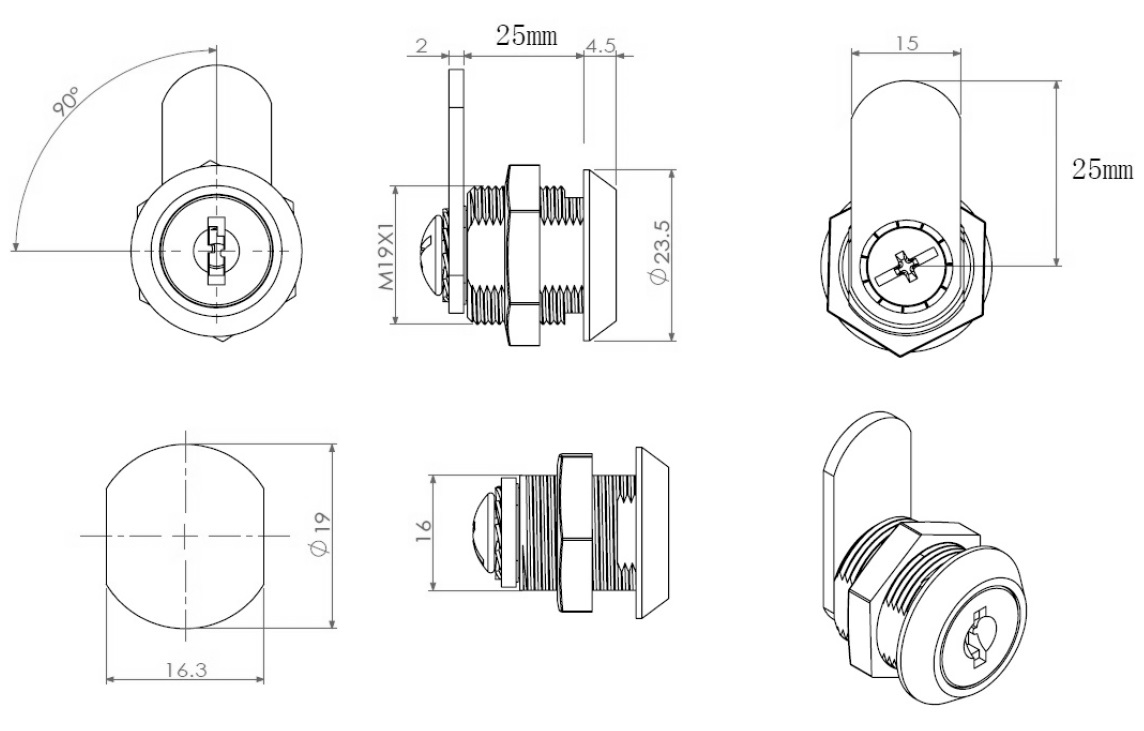 Cam Lock MIC1925S, 90DG, Cam No. A01,CPL,Snake CK SISO,#01 NOT with Full Thread