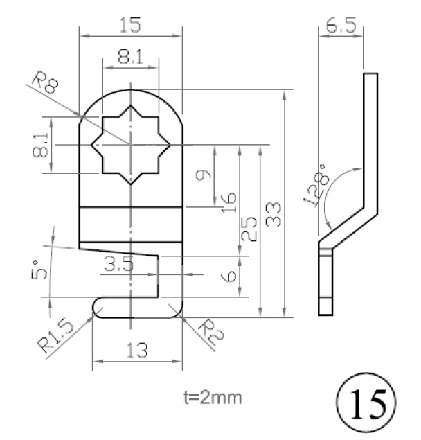 Cam No. 15 F/1900 Series, Cranked 8,5mm, 25mm C/E, W/Hook