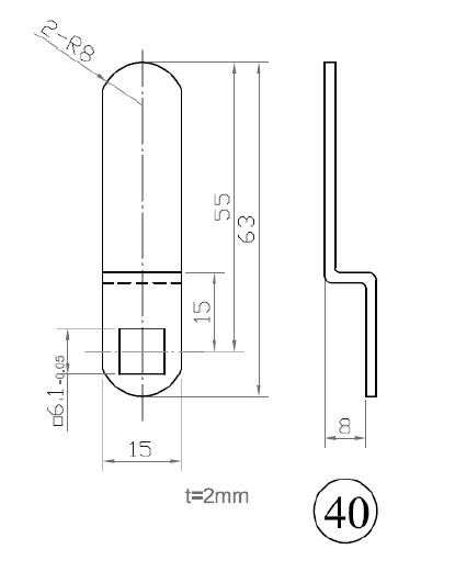 Cam No. 40 F/Combi Locks, Cranked 8mm, 55mm C/E,Hole:6x6mm Fits for Locks M237/238/266/268/300/316/3001 & 3002