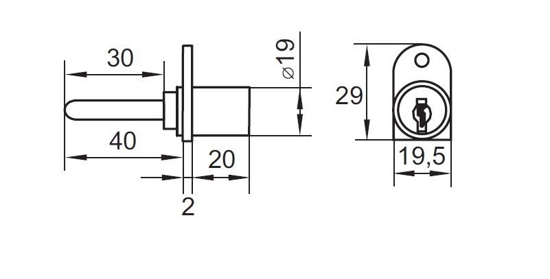 Cent. Lock 1018, ø19x20mm, One Wing, Body Only, #J11+12, No Accessories and No Bar, 40mm Tail