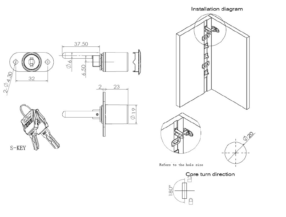 Cent. Lock MIC1018S,Black Ano,ø19x23mm,40mm T,Snake CK SISO, System #01, No Locking Bar, No Accessories