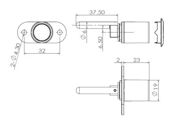 Cent. Lock MIC1018S, ø19x23mm,40mm Tail,Body Only, #01, 8mm Pegs, NPL, W/Accessories But No Cylinder Or Bar