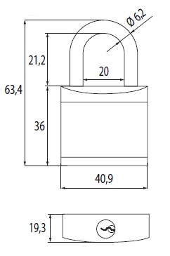 Padlock 40mm Full Plastic Cover, 150 KD, Shackle 6,2mm, 41x 36x19.2mm, With 3 Keys