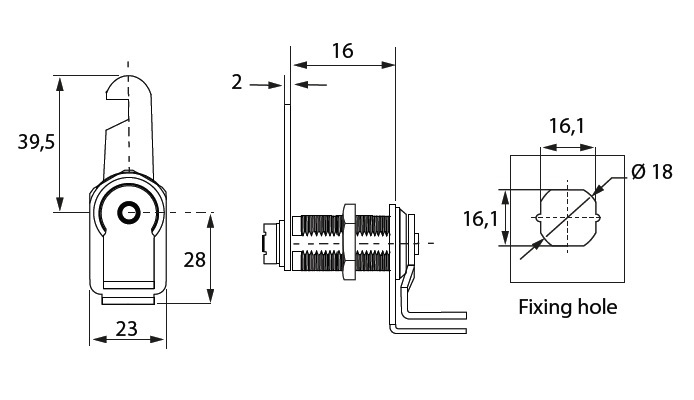 Padlockable Cam Lock "Loop", 360DG, CPL, ø18x16mm,Hooked Cam C/E: 39,5mm, Shackle Hole: ø8mm