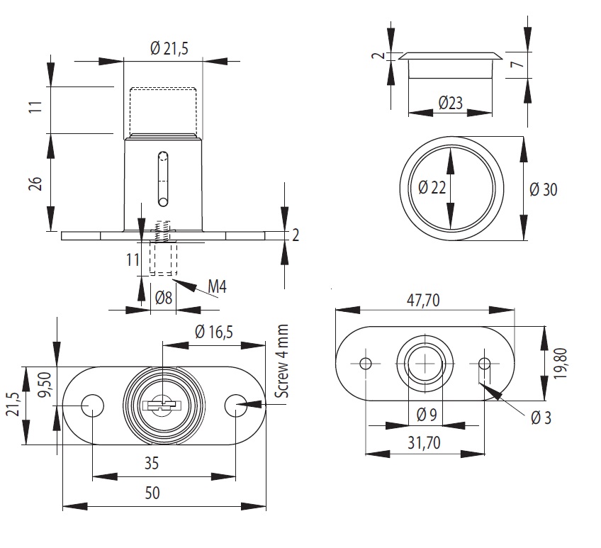 Push Button Lock 1004, ø22x24mm, NPL, CK SISO