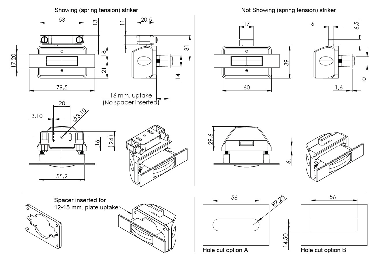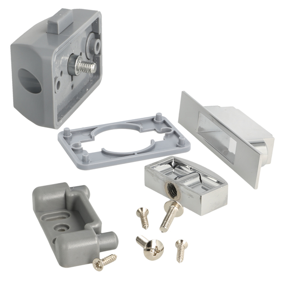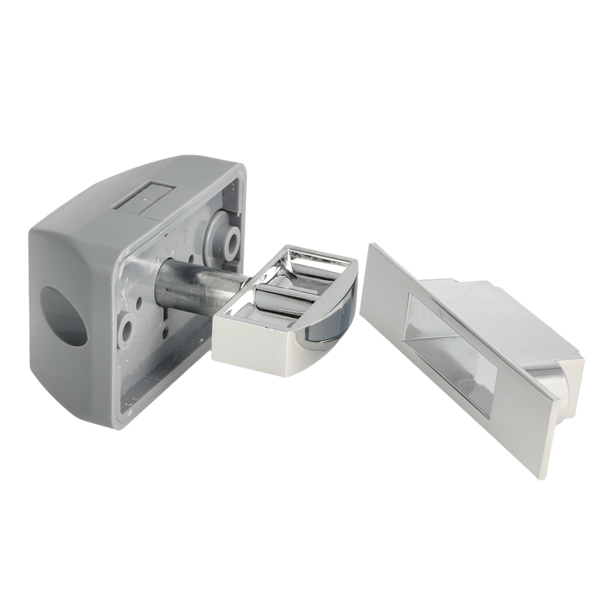 Push Lock "RV", F/12-16 mm, CPL, "Recta" Zamak Knob & Grey ABS Housing, Incl. Grey ABS Striker W/Spring Tension & 3mm Panel Reduction Spacer in Grey ABS