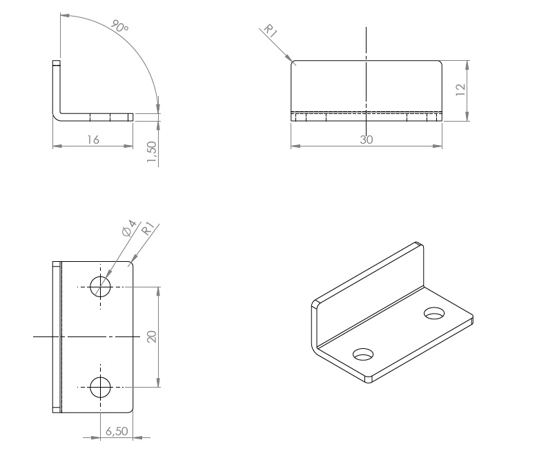 L-Shaped Striking Pl. 30x16x12mm, NPL Steel - 1,5mm