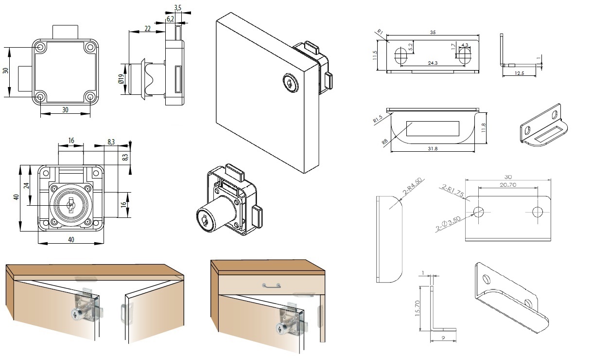 Rim Lock 850, ø19x22mm "L", Double Locking, CK SISO, KA D20, W/2 L-Shaped Metal Strikers, Perfect F/Double Door Cabinets, Left Hand