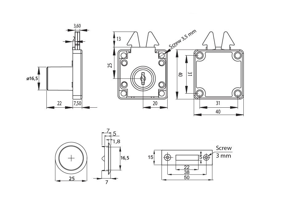 Roll Blind Lock 855, ø16,5x22mm, Black Anodized, CK SISO, W/ Flat Striking Plate