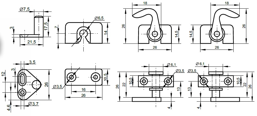 Accessories F/Espagnolet Lock, NPL,W/Triangular Bolt,No Bars